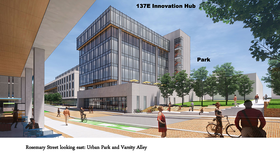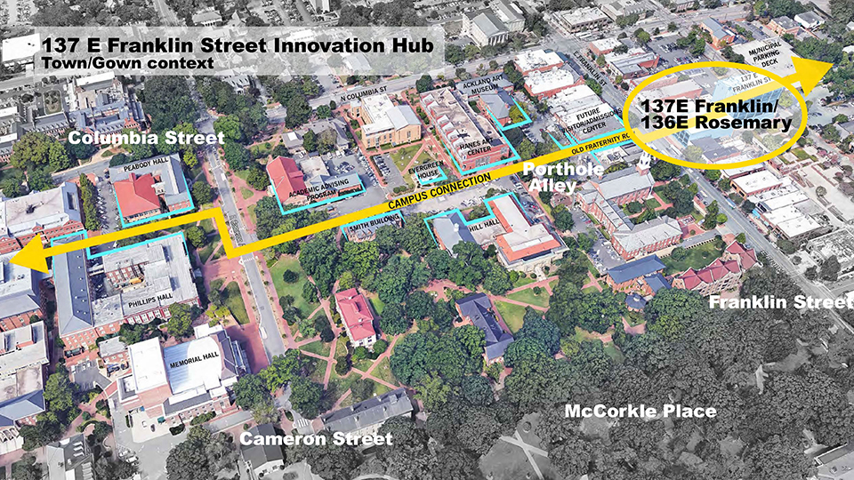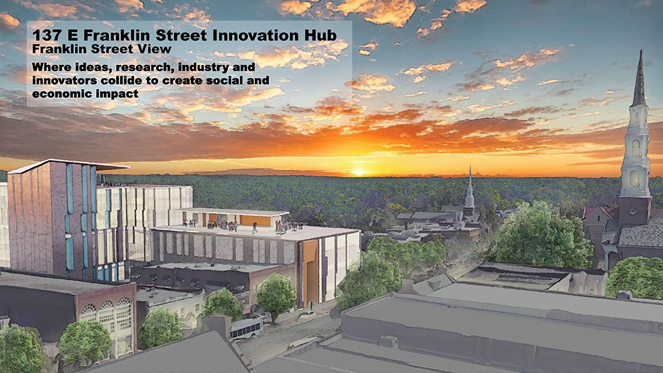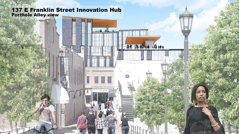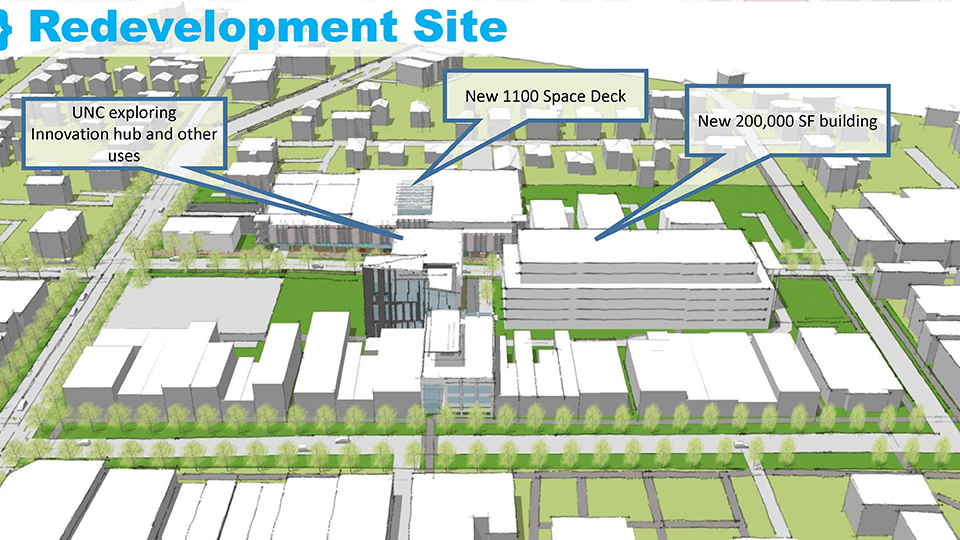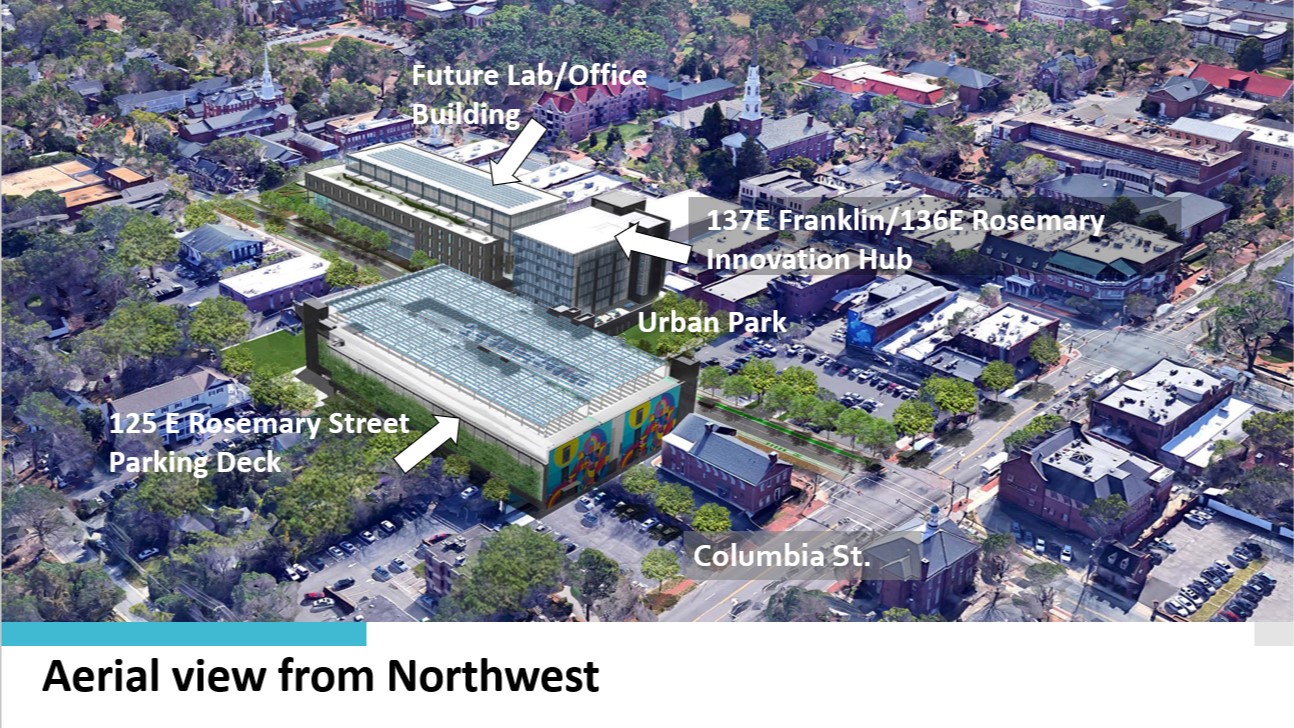 The project involves construction of a 1,100-space parking deck and an office building with web lab space, bringing an estimated $50 million investment and 800 jobs. UNC-Chapel Hill announced their joining of envisioned Innovation Hub–The Junction.