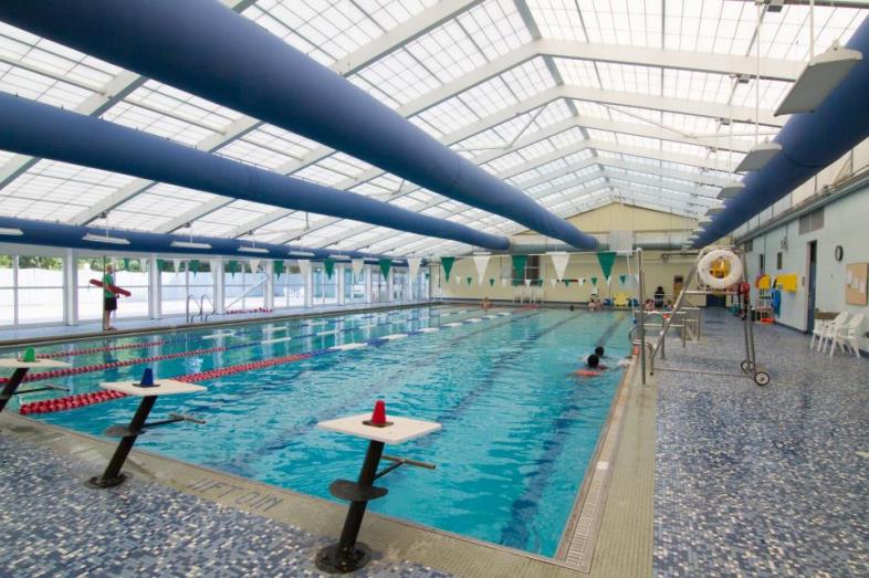 The 25-yard pool offers zero-depth entry and 4 lap lanes. General Pool Information, view our Aquatic page for pool schedules and info on pool rules, lockers, accessibility, and daily visit and multi-day pool passes. |